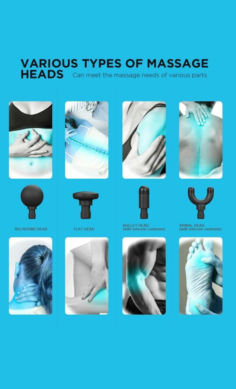 جهاز المساج M1 مع رؤوسه الأربعة يساعد على الاسترخاء والراحة ويحرك مفاصل الجسم ومناسب لأي منطقة في الجسم