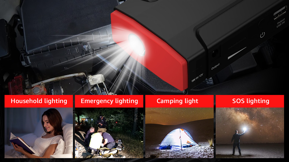 يعمل جهاز تشغيل بطارية السيارة A8 بسعة 10000 مللي أمبير وتيار ذروة يصل إلى 1000 أمبير.