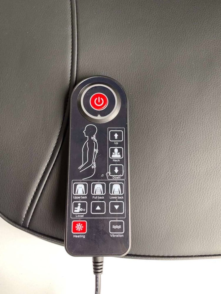 يتوفر جهاز تحكم للتحكم في سرعة التدليك واتجاه رؤوس التدليك وتفعيل او الغاء التدليك الحراري